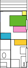 縮尺間違ってるかな。ベッド(緑)でかすぎ???