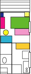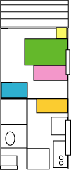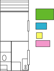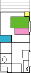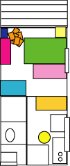 縮尺間違ってるかな。ベッド(緑)でかすぎ???